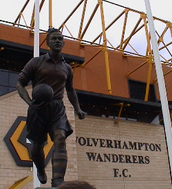 Captain of England and Wolves, the great Billy Wright. His statue stands in front of the main entrance and the Billy Wright (West) Stand Molineux is also host to more than Football. Here are two London Wolves, Rob and Si, together with Sir Jack, President and benefactor, and with the manager who took Wolves into the Premiership, Dave Jones, just before Rob’s wedding to Lin on 30th April 2004 A player’s eye view of the Steve Bull stand from the tunnel
