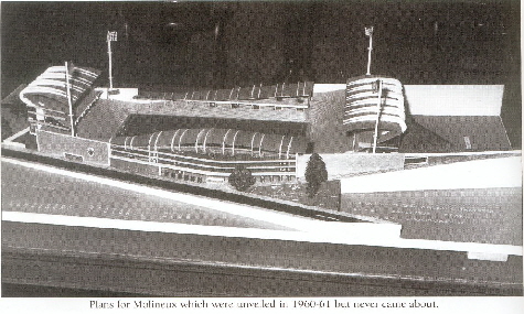 Some pix of Moli during reconstruction are here: http://fp.homesoffootball.f9.co.uk/wolverhampton_wanderers1.htm In the 60’s some interesting design concepts were put forward for a new stadium but it wasn’t until the arrival of Sir Jack that the funds were available to modernise.
